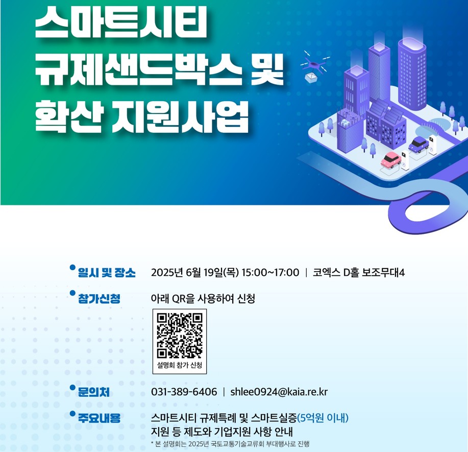 공고 제2025-1102호 「스마트도시 조성 및 산업진흥 등에 관한 법률」제50조 및 제52조에 따라 스마트실증사업 계획을 승인 및 변경승인하고 다음과 같이 공고합니다. 2025년 09월 05일 국토교통부장관   스마트실증사업 계획 승인 및 변경승인 공고   □ 수요응답형 마을버스 동작구 DRT 사업 스마트실증사업 계획 승인 ㅇ 사업내용 : 마을버스 면허 사업자가 수요응답형 운행 체계를 도입·적용하여 운행하는 마을버스형 DRT 서비스를 서울특별시 동작구 사당동에서 [...]