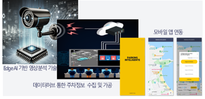 • 사업내용 : Edge AI 기반 영상분석으로 주차공간 실시간 탐지, 데이터허브 연계 주차 수요·공급 정보 통합, 모바일 앱을 통한 위치·요금·예측 정보 제공