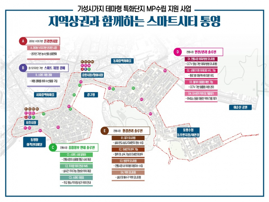 통영시(시장 강석주)는 2019년 스마트시티 테마형 특화단지 마스터플랜 수립 지원사업의 대상지로 통영시, 부산광역시 수영구, 서울특별시 성동구, 충청남도 공주시/부여군 4곳이 선정되었으며, 우리시는 전통시장을 기반으로 하는 산업육성형 테마를 가지고 “지역상권과 함께하는 스마트시티 통영”이란 주제로 공모 신청하여 최종 선정됐다.