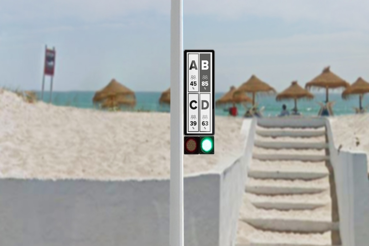 해변의 밀집을 방지하기 위한 이 시스템은 태양과 바람을 통해 자체 에너지를 만들고 내장배터리에 저장하는 옴니플로(Omniflow)의 스마트폴 기반 기술을 활용한다. 이미 스마트 조명 및 통신 기능을 갖춘 스마트 폴에 인공 지능 및 센서가 장착되어 전체 해변 또는 특정 지역의 점유율을 측정한다. 이렇게 수집된 정보는 해변 입구에 위치한 스마트폴의 저전력 화면에 표시된다. 또한 시간별 인구의 이력 데이터를 볼 수 있는 앱으로 전송되어 사용자가 실시간으로 확인하고 사람들이 덜 밀집된 해변 지역을 선택할 수 있게 도와준다.