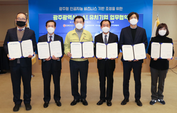 ○ 광주광역시는 인공지능(AI) 전문기업인 ㈜데이터스트림즈, ㈜두원메디텍, ㈜아이크로진, ㈜참좋은넷, ㈜파인씨엔아이와 광주형 인공지능 비즈니스 기반 조성을 위한 66~70번째 업무협약을 체결하고 각 기업별 법인설립 또는 지역사무소 설립을 통해 광주 인공지능 생태계 조성에 적극 협력키로 했다.