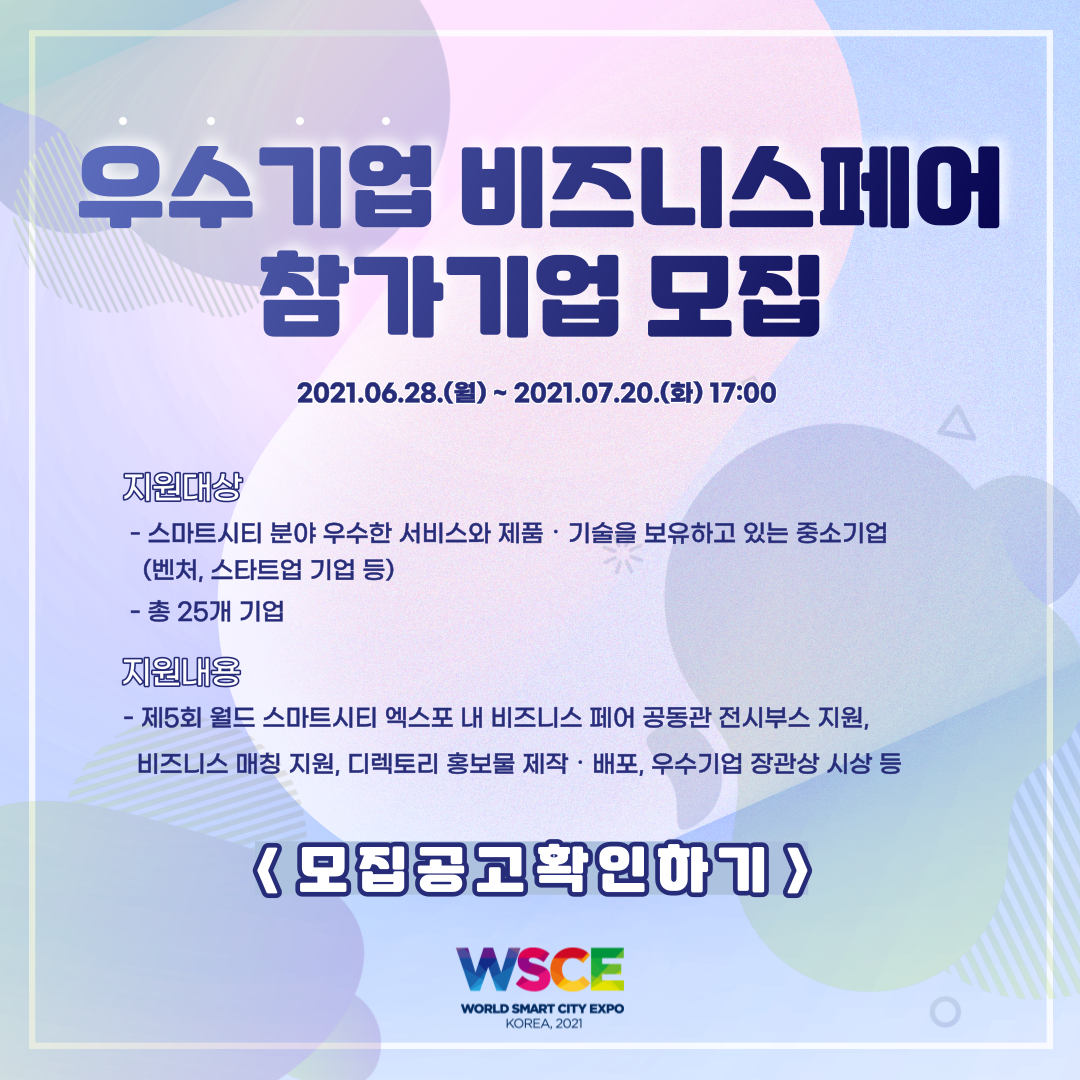 ‘제5회 월드 스마트시티 엑스포’ 우수기업 비즈니스 페어 참가모집