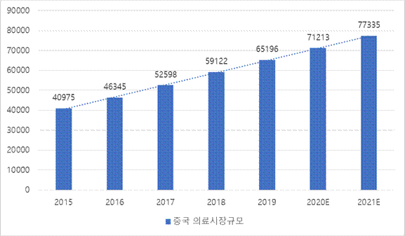 < 중국의 의료시장 규모 (단위: 억 위안) >