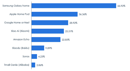 베트남의 스마트스피커 브랜드 인지도, 삼성 갤럭시 홈이 가장 높아