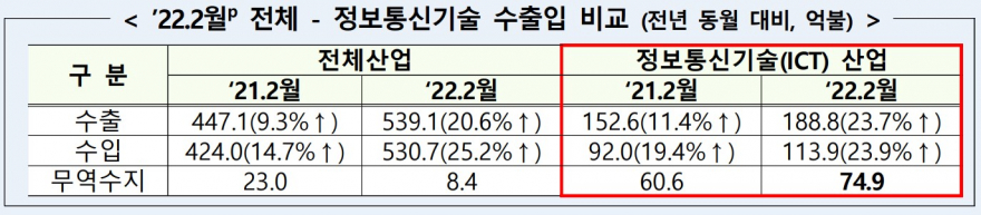 ≪ 요약 ≫ ‘22.2월 정보통신기술(ICT) 수출입 동향