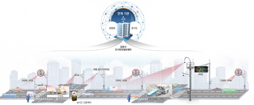 2021년 국토교통부 국고지원사업으로 선정되어 국비 51억을 성공적으로 확보함에 따라 총 85억의 사업비를 투입하여 본격적으로 추진하는 사업으로, 김포시 도로교통 여건에 맞춘 스마트한 교통 인프라를 구축하여 안전한 교통환경을 조성하는 사업이다.
