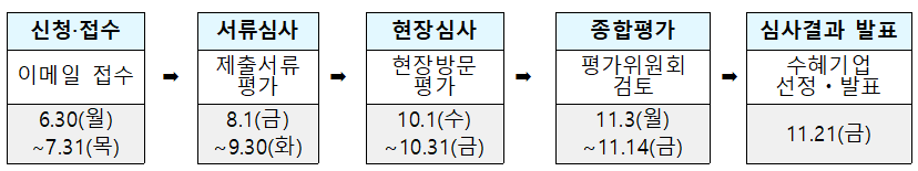 □ 공모는 7월 31일(목)까지 신청을 받고, 약 3개월 간 서류·현장 평가를 거쳐 11월 중 최종 선정할 예정이다.
