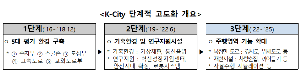 K-City 3단계 고도화 : ‘현실과 동일한환경에서 완전 자율주행 기술 검증 가능