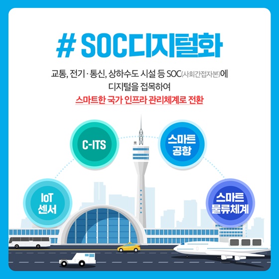 Transition to a smart national infrastructure management system by combining digital with SOC (Social Overhead Capital) such as transportation, electricity/communications, and water and sewage facilities