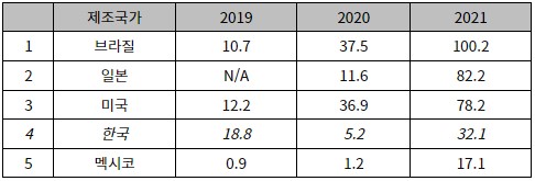 Hybrid cars imported to Colombia are largely made up of Korean, American, and Japanese brands. In the case of Korea and the United States, automobiles are produced and exported directly in their own countries, but Japanese brands have production plants in Brazil, so they are exported from Japan and Brazil. Toyota, for example, exports mainly to Latin American countries through its production plants in Brazil. Toyota has a production base in Brazil and has advantages such as reduced transportation costs and reduced tariffs when entering the Latin American market.