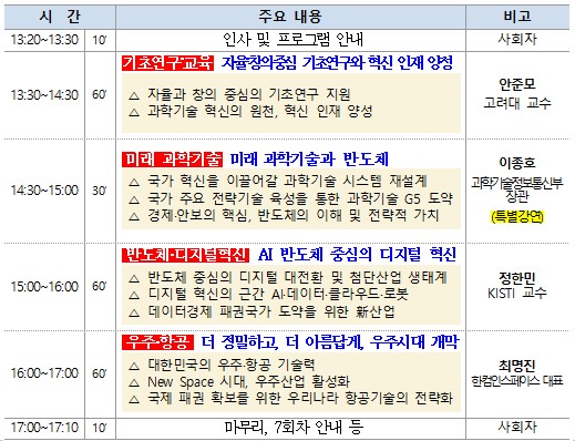 ○ Minister of Science and Technology Lee Jong-ho, a world-renowned scholar in the semiconductor field, will explain the future science and technology policy direction for national innovation and understanding and strategic value of semiconductors, which are the core of economy and security.