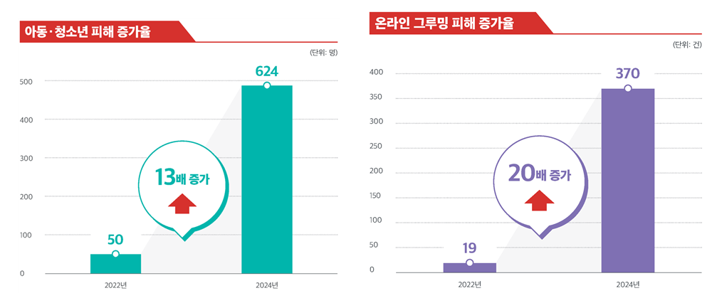 □ In particular, online grooming damage targeting children and adolescents was only 22 cases (19%) in 3.3, but increased to 24 cases (370%) in 10.6, a whopping 3-fold increase over three years.