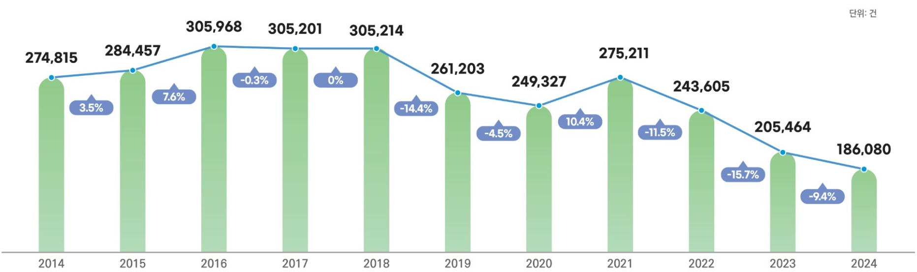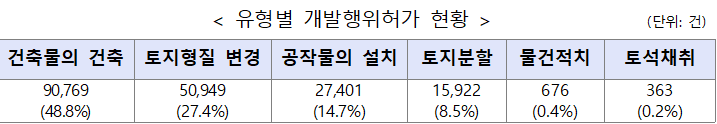 ㅇ To construct buildings and change rice paddies and fields to development purposes Development activities* Home는 '24년 186,080건to Aggregationdone.