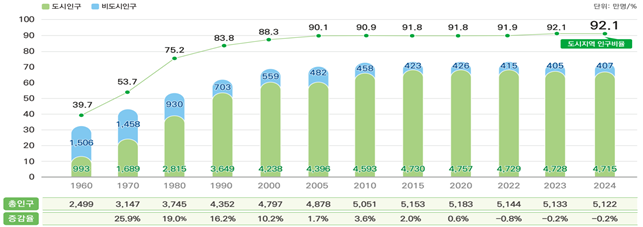 - It was found that 92.1 million people, or 4,715% of the registered population, live in urban areas. previous year과 Same level이다.