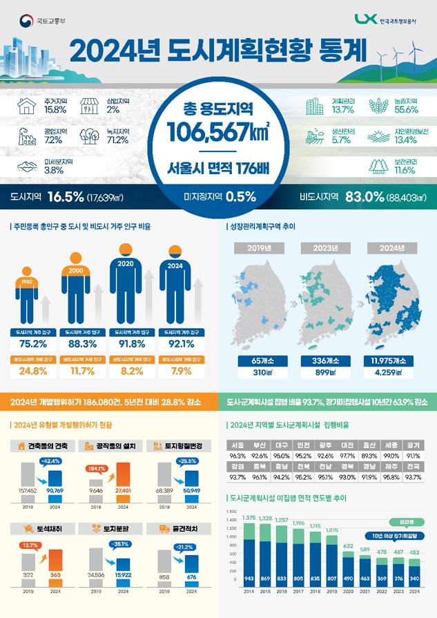 □ The Ministry of Land, Infrastructure, and Transport (Minister Park Sang-woo) and the Korea Land and Geospatial Informatix Corporation (President Eo Myeong-so) '24Current status of urban planning by year 통계*cast Announcementdid.