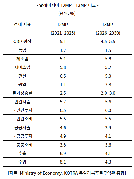 The 13th Malaysia Plan (13MP) sets a target of 4.5-5.5% annual GDP growth between 2026 and 2030.