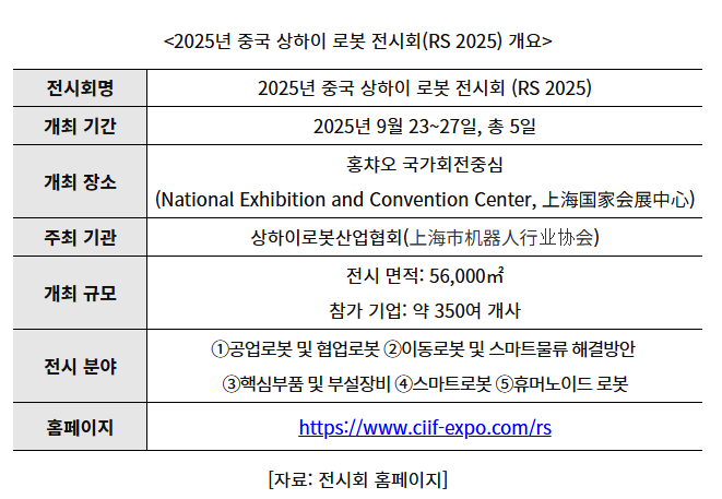 Source: 2025 Shanghai Robot Exhibition website, China Industry Information Network, KOTRA Shanghai Trade Center